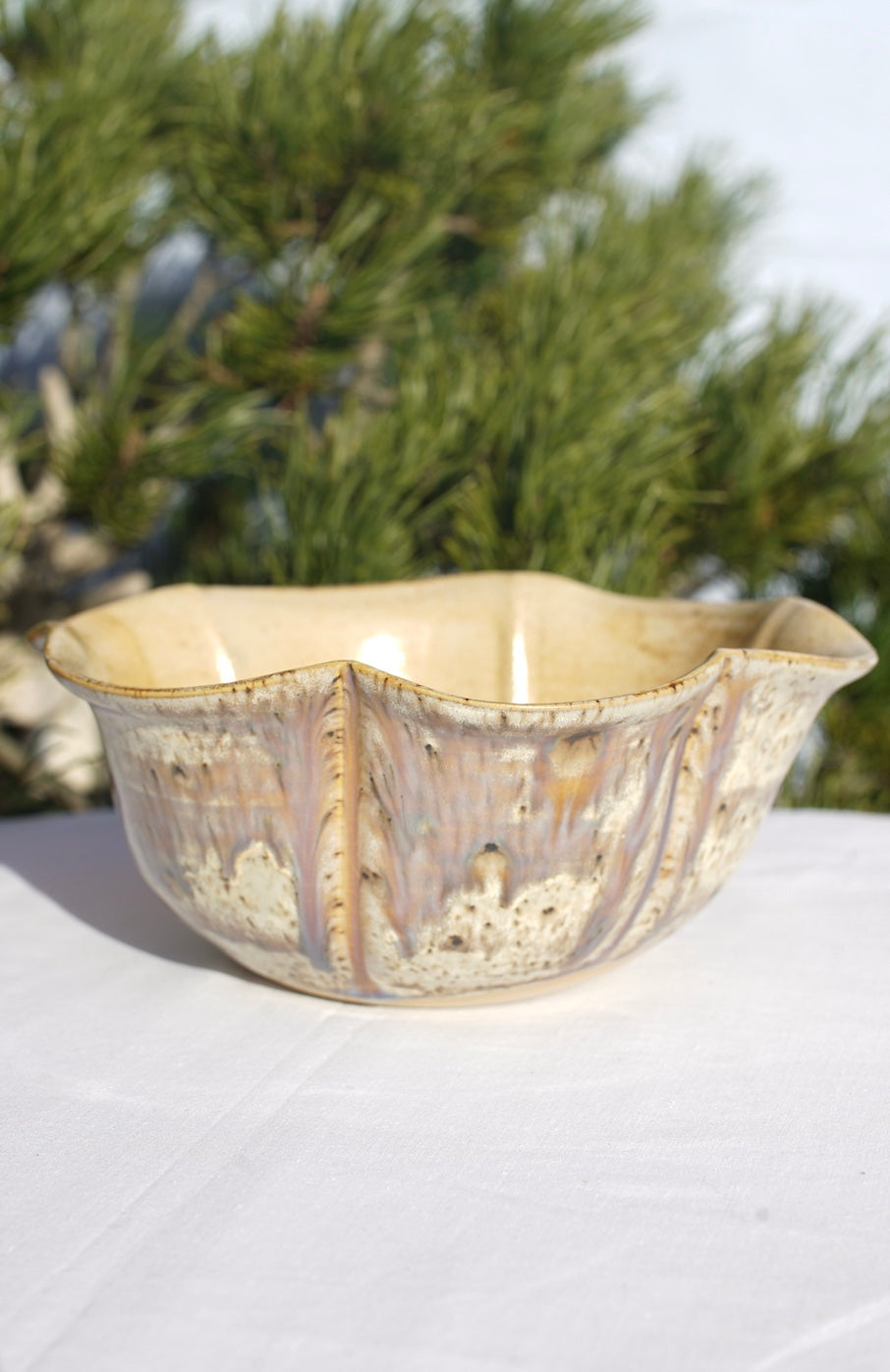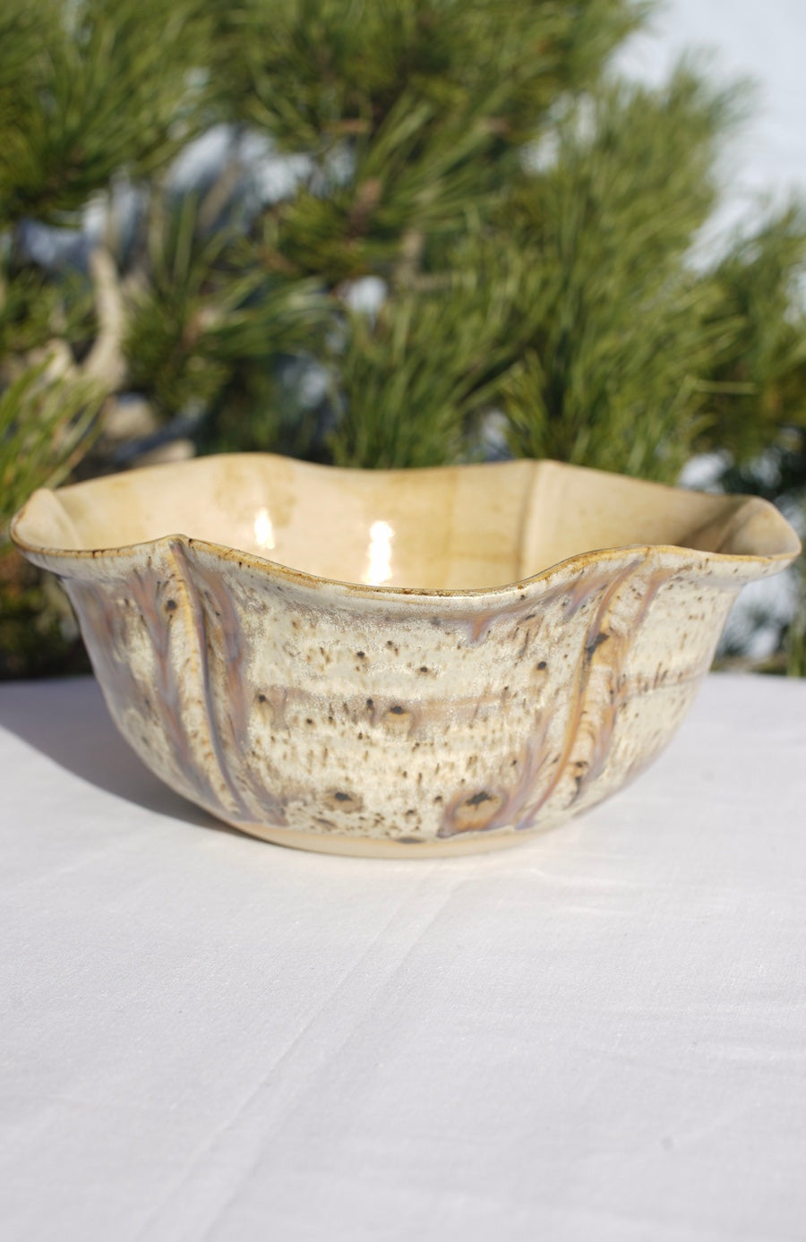 Die Schale fasst etwa 750 ml ist 7,5 cm hoch und hat einen Durchmesser von 19 cm. Sie wurde bei 1245Grad gebrannt.